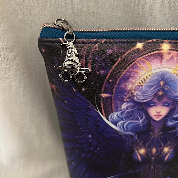 Handmade Mystical Magical Lady Vinyl Pouch with Wizard Hat Zip Pull