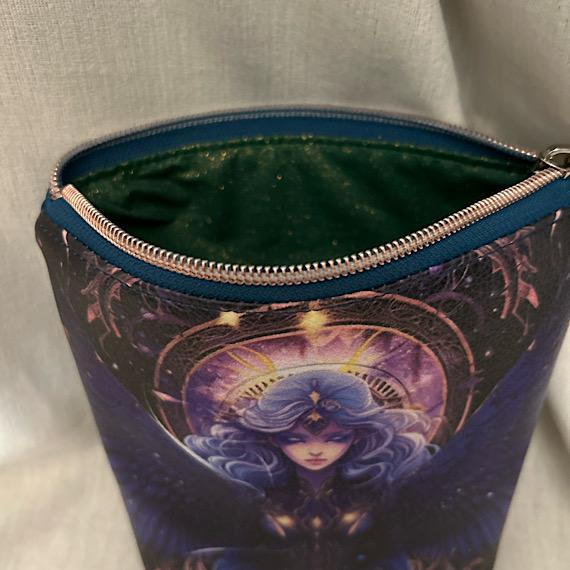 Step into a world of wonder with our mystical magical lady vinyl pouch. Crafted with care, this pouch stands out with its unique design and whimsical details:
