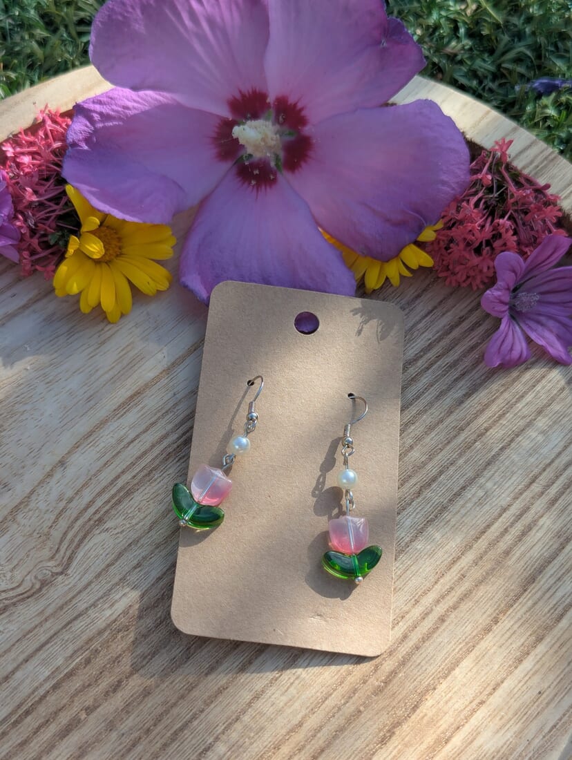 Handmade Pink Glass Tulip Earrings – Unique Floral Jewelry