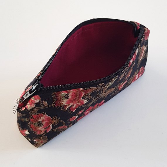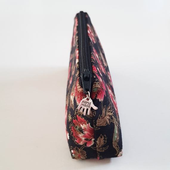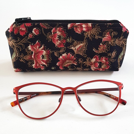 Handmade Red Floral Glasses Case – Elegant Zip Pouch for Sunglasses or Eyewear
