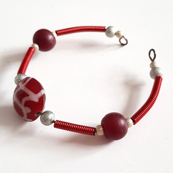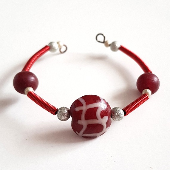 Whether you’re after a modern handmade look or a splash of bold red, this bracelet is a wearable piece of art designed to stand out.
