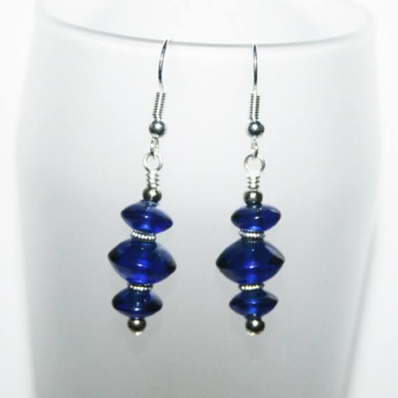 Handmade Royal Blue Glass Bead Drop Earrings – Elegant Dangly Earrings with Silver Accents