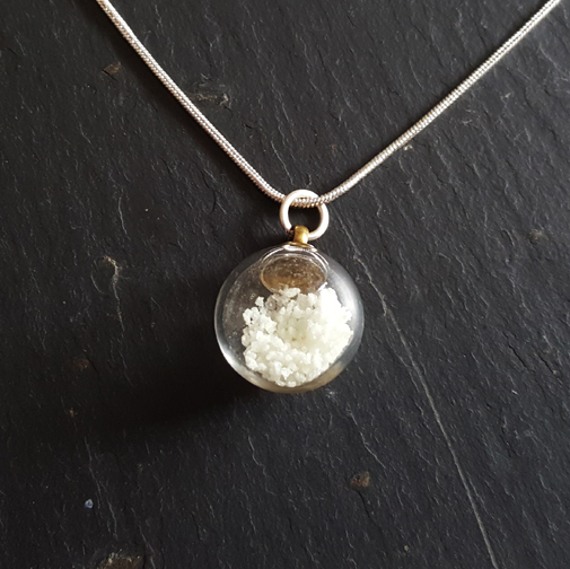 Handmade glass orb pendant with glow-in-the-dark crystals