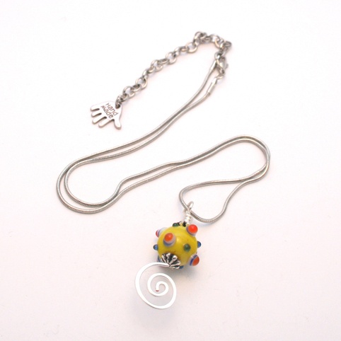 Handmade Yellow Lampwork Bead Swirl Pendant Necklace – Quirky Wirework Jewellery UK