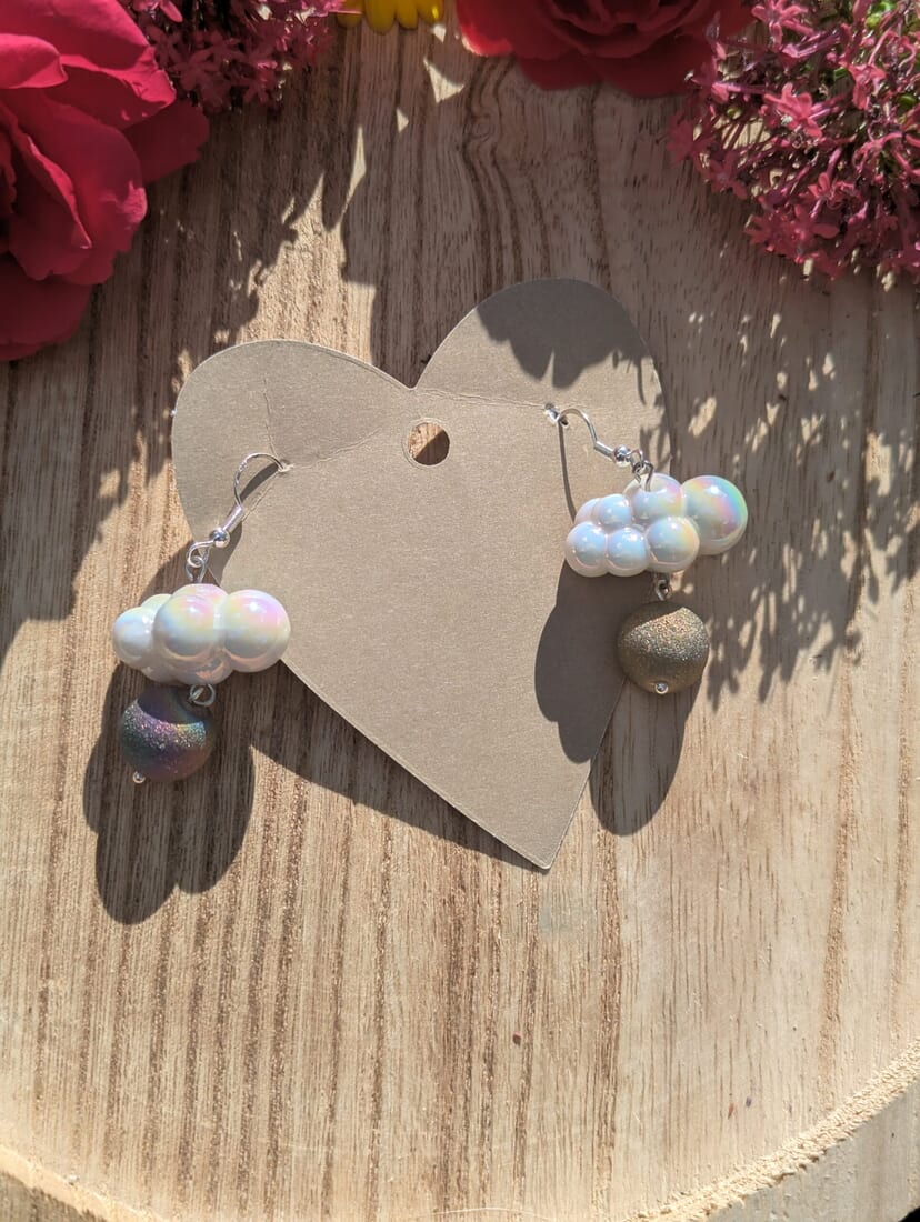 Handmade with care and attention to detail, these earrings make a unique gift for yourself or a loved one. Stand out from the crowd and let your style shine with our Iridescent Cloud earrings.