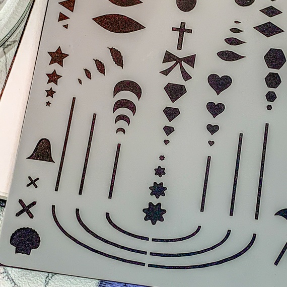 This page-sized stencil is packed with versatile shapes, including standard and wide semi-circles that can be used to create complete circles or add length. Representing various beads like stars, circles, and hexagons in different sizes (2mm, 4mm, 6mm, 8mm), this stencil offers endless design possibilities. It also includes shapes for different occasions like summer, gifts, valentines, and Christmas.