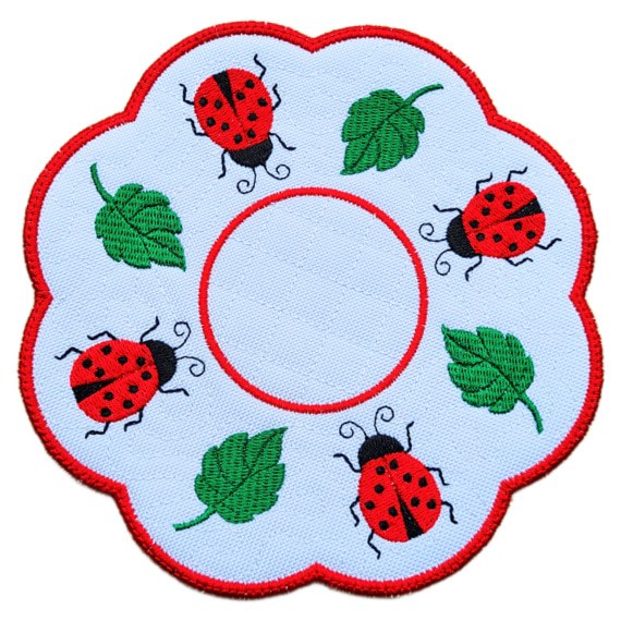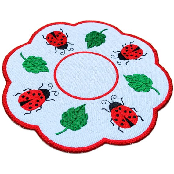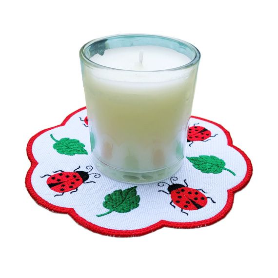 Add a cheerful touch to your home with this Ladybird Decorative Candle Mat, featuring charming embroidered ladybirds and leaves. A delightful gift for nature lovers and a bright accent for any room.