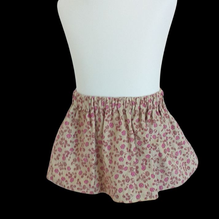This corduroy skirt has an elasticated waist, the fabric has a tiny pink flower pattern on a deep cream background. I’m sure you would be proud to take you little girl out in this lovely skirt which can be teamed with a little sweater and a pair of thick tights which would complete the outfit. She could be setting a trend for all her friends to follow.