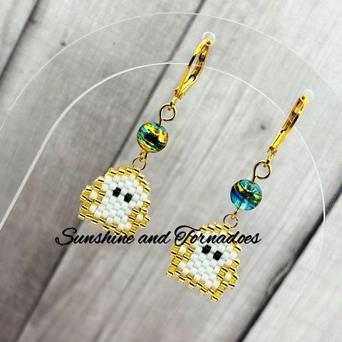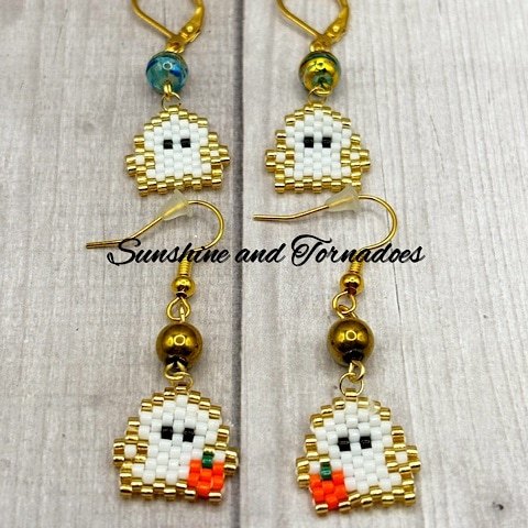 Little Spooks – Handcrafted Bead work Earrings – Halloween Earrings – Drop Earrings – Brick Stitch – Bead work – Ghost Earrings – Cute Earrings – Cute Ghost Earrings – Alternative.