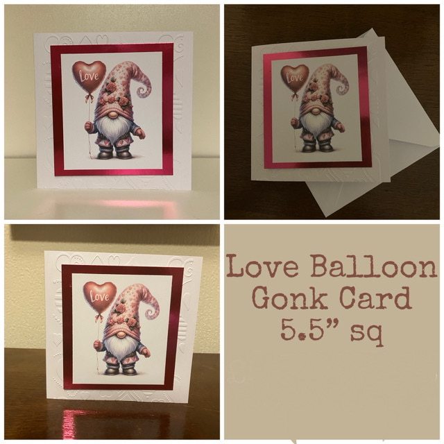 Love Balloon Gonk Card-5.5”sq with envelope.