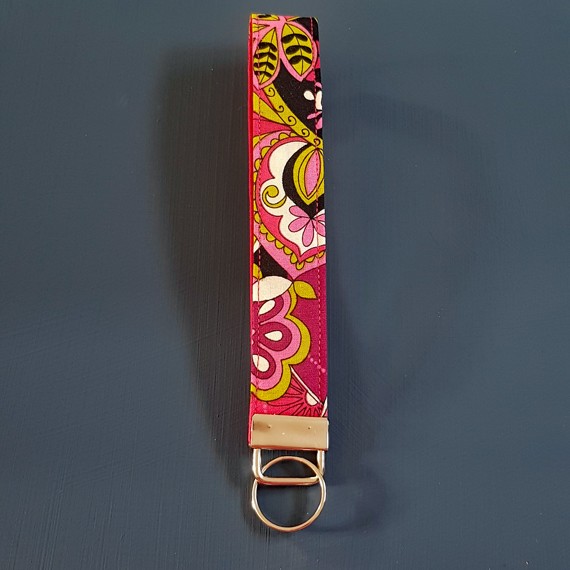 Bright and bold, this Magenta Floral print wristlet keyfob is handmade with durable fabric and a strong clasp. A stylish way to keep your keys or bag secure and a perfect gift for floral lovers.