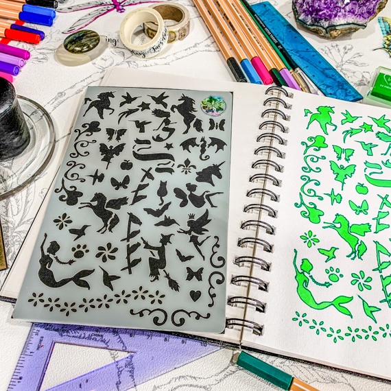 Magical Creatures Journal Stencil for Enchanting Notebook Designs