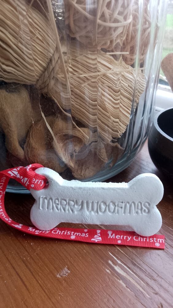 Merry Woofmas bone shaped Clay Hanging Oil Diffuser – Eco-Friendly. Dog lover gift