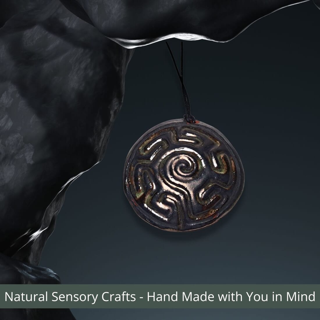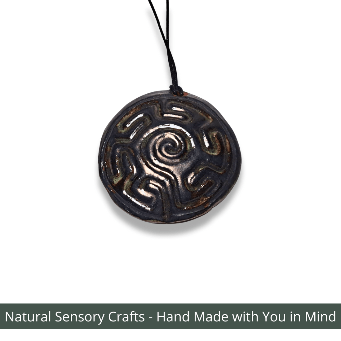 A ceramic labyrinth pendant can be a great ‘green’ alternative to portable plastic sensory and fidget toys/tools.