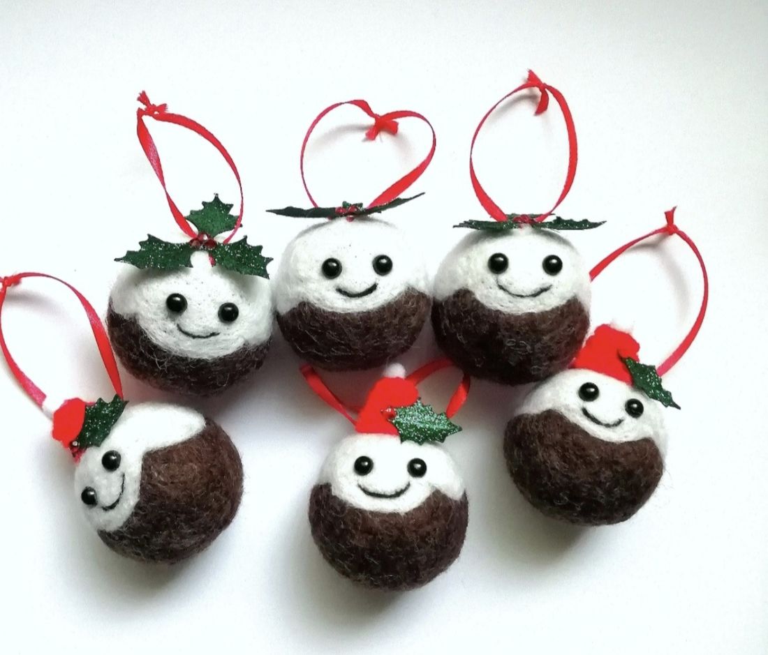 Needle Felted Christmas Pudding Decorations – Set of 2