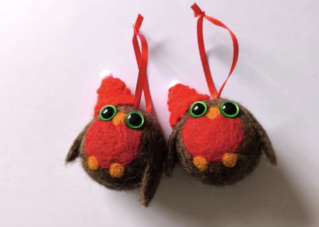 Needle Felted Robin Baubles – Set of 2 Handcrafted Christmas Ornaments