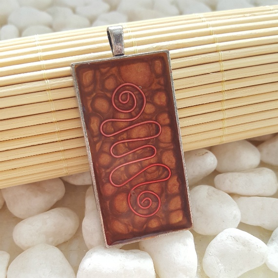One-of-a-Kind Hand Painted Rectangular Resin Pendant – Red Wire Swirl Inclusion – Abstract Artisan Necklace UK