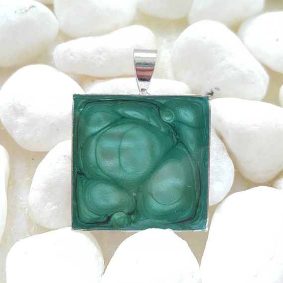 One-of-a-Kind Hand Painted Turquoise Resin Pendant – Abstract Square Art Necklace – Handmade Artisan Jewellery UK
