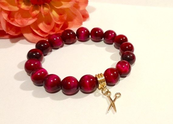 Pink Tiger’s Eye Bracelet with Scissor Charm