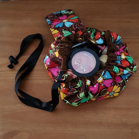Retro Floral Flat Lay Drawstring Makeup Bag – Vintage-Inspired Cosmetic Organiser for Travel & Home