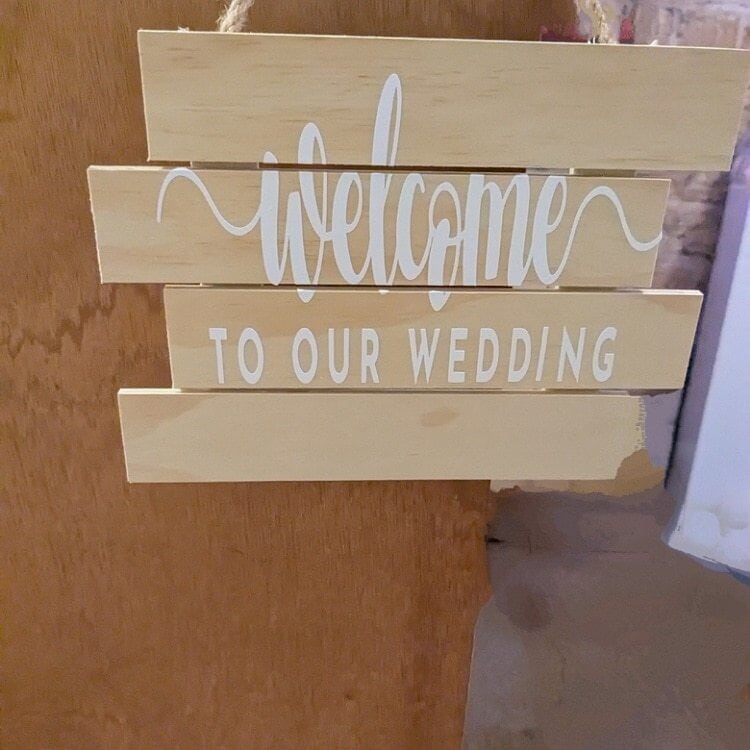Whether you’re planning a rustic-themed wedding or simply want to add a personalized element to your decor, this wooden hanging sign is a lovely choice. It not only welcomes guests but also serves as a beautiful keepsake from your special day.