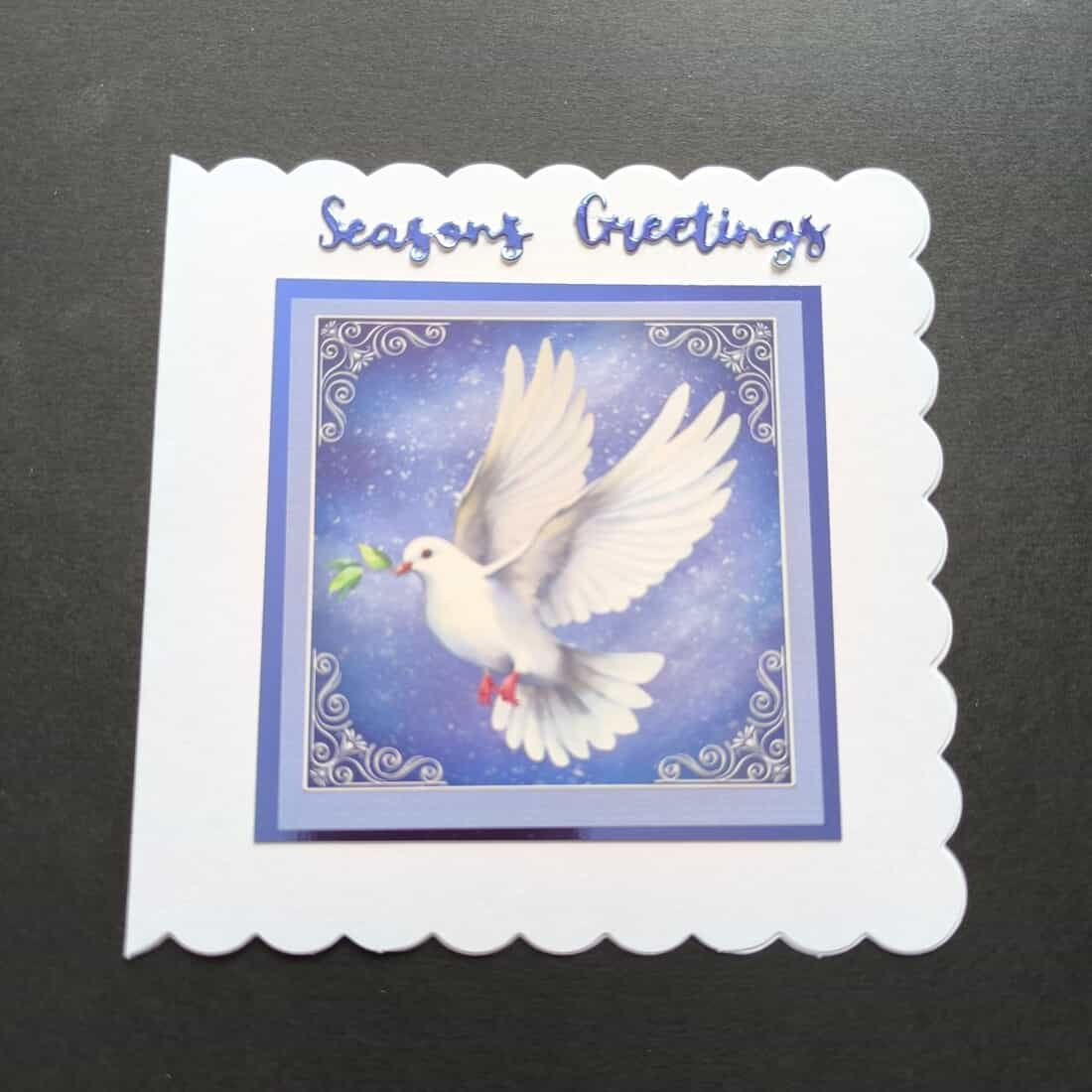 Scalloped Edge Christmas Card with Dove Design – Blank Inside