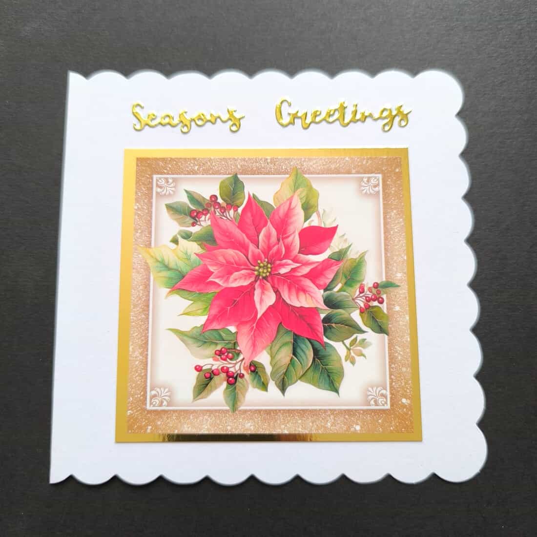 Scalloped Edge Christmas Card with Poinsettia Flower Design