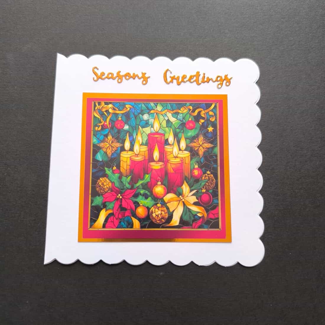 Scalloped Edge Christmas Card with Stained Glass Candles Design