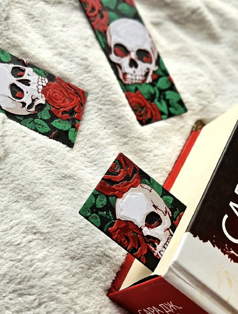 Set of 3 Dark Romance Skull and Roses 3D Printed Bookmarks