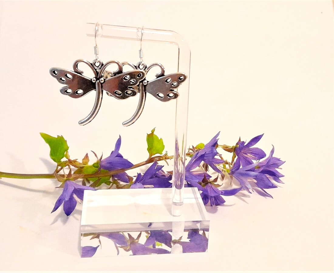 Stainless steel large Dragonfly Earrings on Sterling Silver Wires