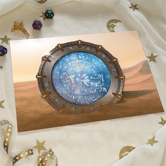 Unlock the mysteries of the universe with our custom astrology charts presented in a mesmerizing Stargate design. Choose from three captivating settings: desert, underwater, or deep space, to enhance your cosmic journey.