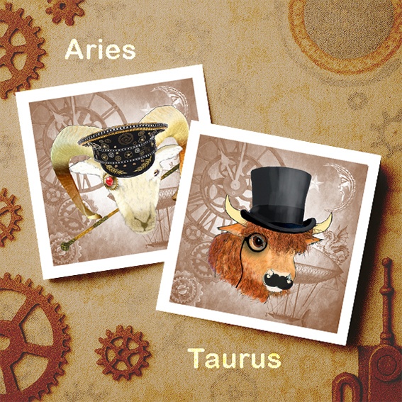 Explore the fascinating world of Steampunk with my Zodiac Blank Greeting Cards!