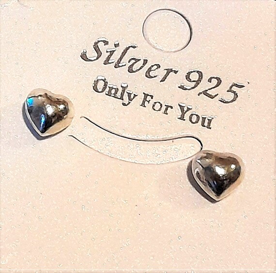 Sterling Silver Tiny Puffy Heart Earrings for Women