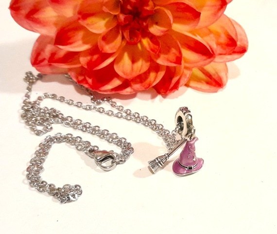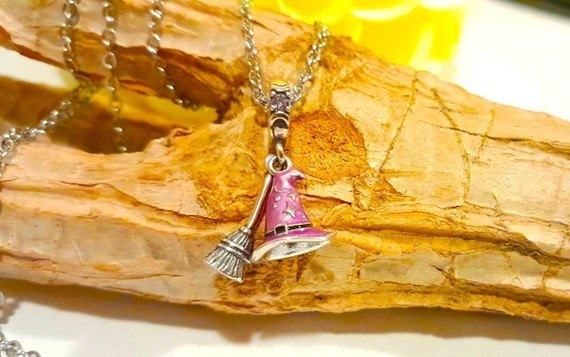 Sterling Silver Witch’s Hat and Broomstick Necklace on Stainless Steel Chain