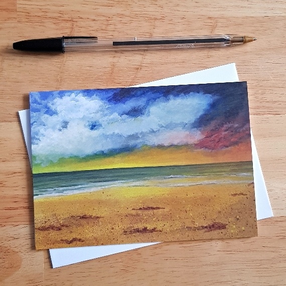 Stormy Sunset on the Beach – Acrylic Painting Print Greetings Card for Any Occasion