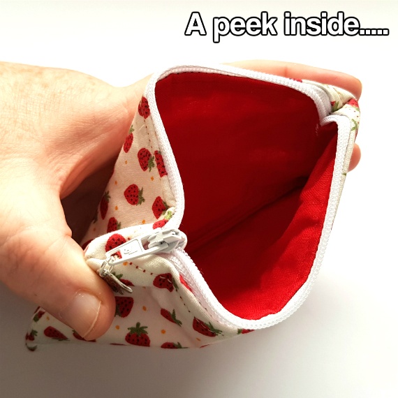 Strawberry Print Handmade Zipper Pouch – Coin Purse, Card Holder, Mini Organiser for Medication & Essentials