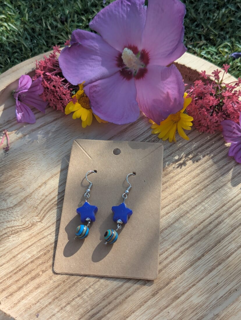 Give your outfits a celestial touch with these Blue Star Earrings and let your style shine bright like a star.