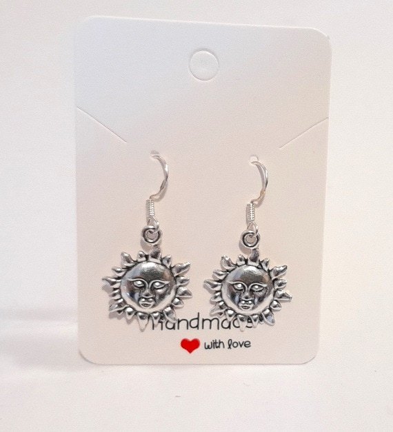 Sun Face Goth Pagan Silver Earrings on 925 Silver Wires