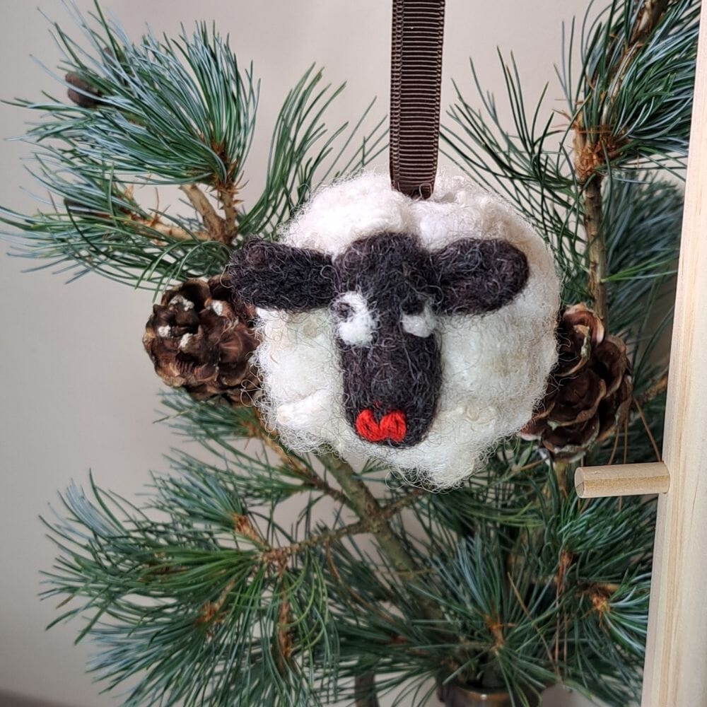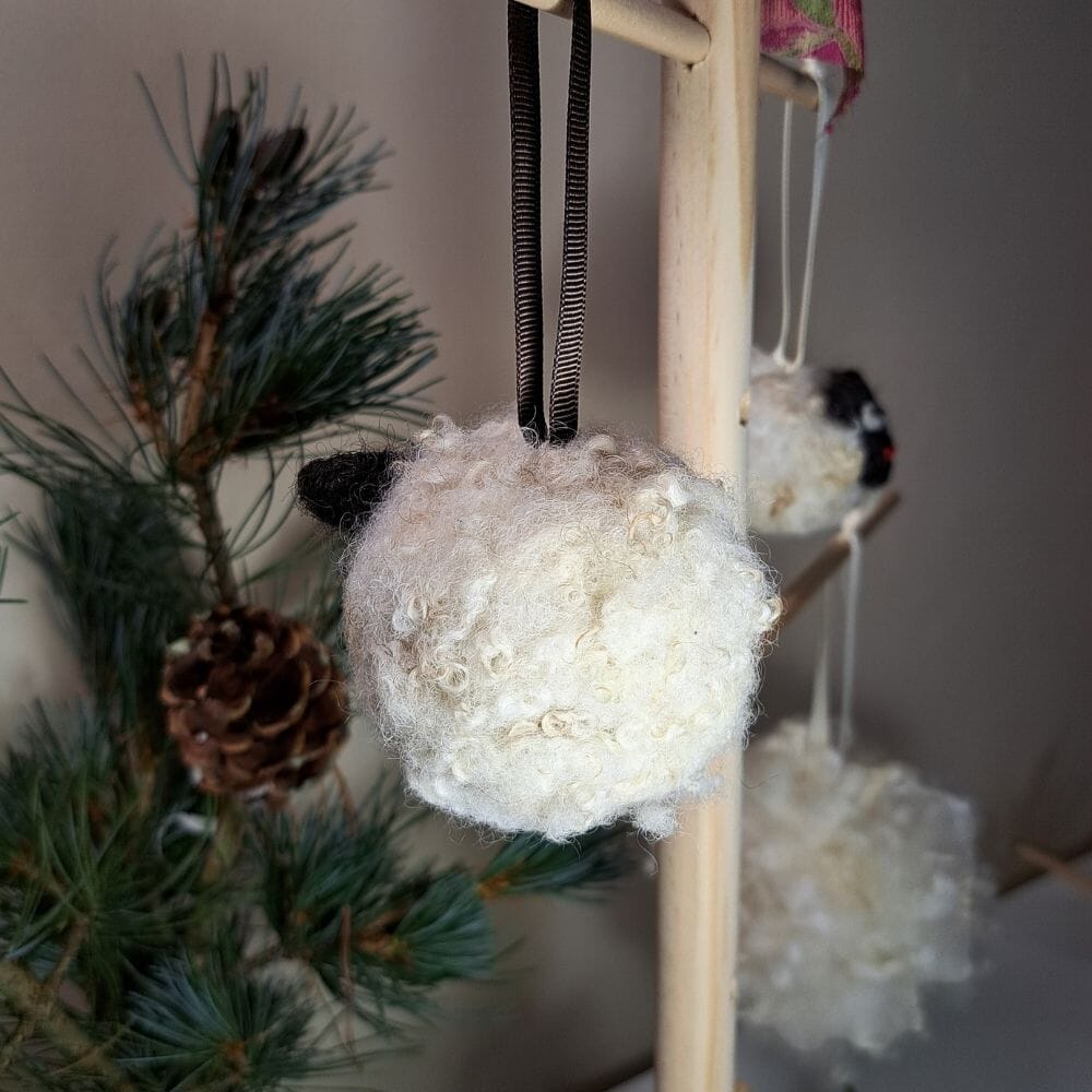 Sweet pure wool sheep bauble pet and children safe for natural and sustainable Christmas