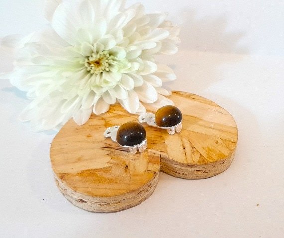 Tiger’s Eye Sterling Silver Clip-On Earrings 10mm Gemstone