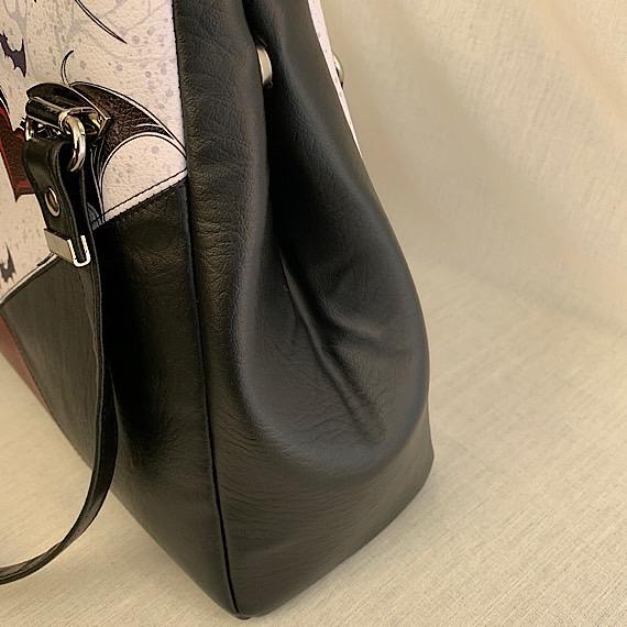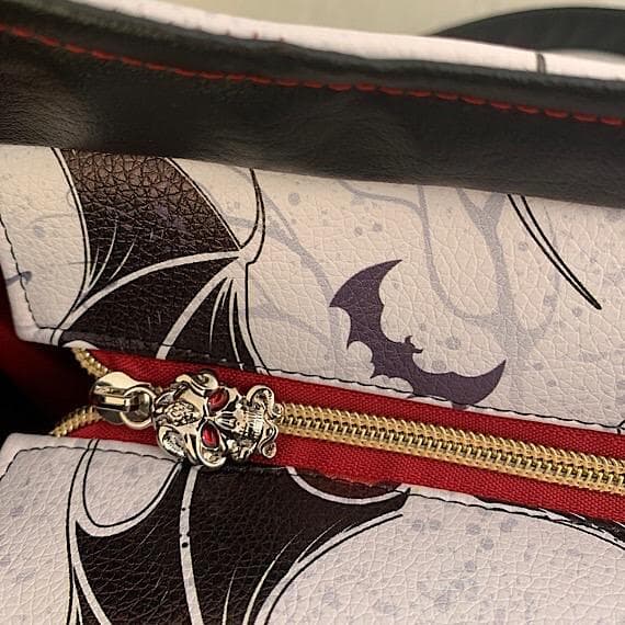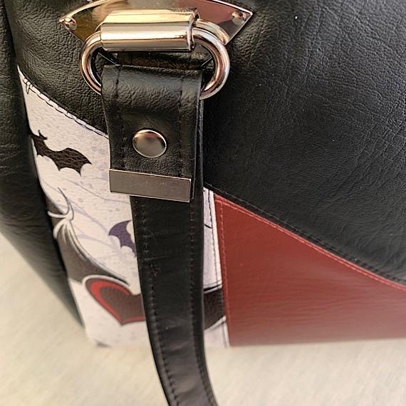 Unique Handmade Bat Handbag in Weatherproof Vinyl with Skull Zip Pull