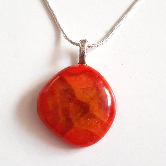 Unique One-of-a-Kind Handmade Dark Orange Fused Glass Pendant Necklace