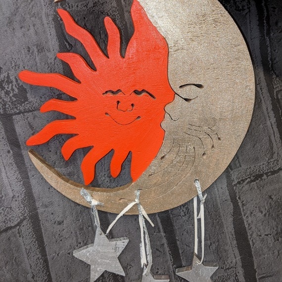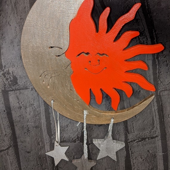 Vibrant Bright Orange and Silver Sun and Moon Hanging Decoration with Stars