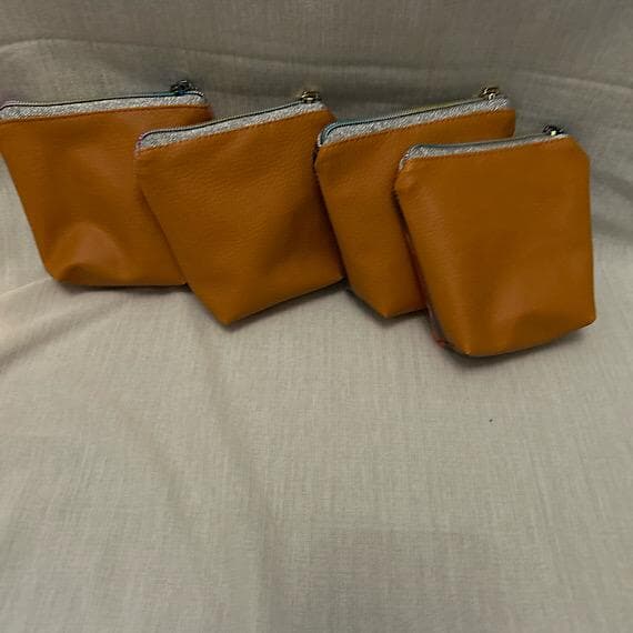Vintage 60s Style Handmade Vinyl Pouches Set of 4 with Zipper Top