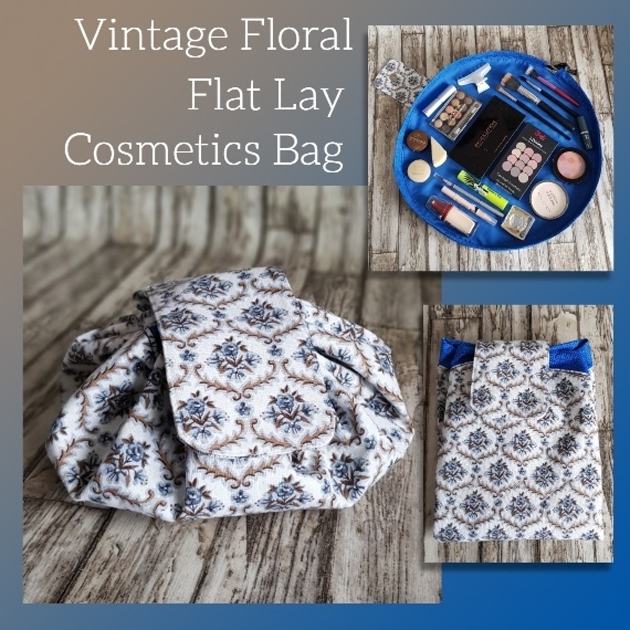 Vintage Floral Flat Lay Drawstring Makeup Bag – Eco-Friendly Cosmetic Organiser Made from Repurposed Fabric