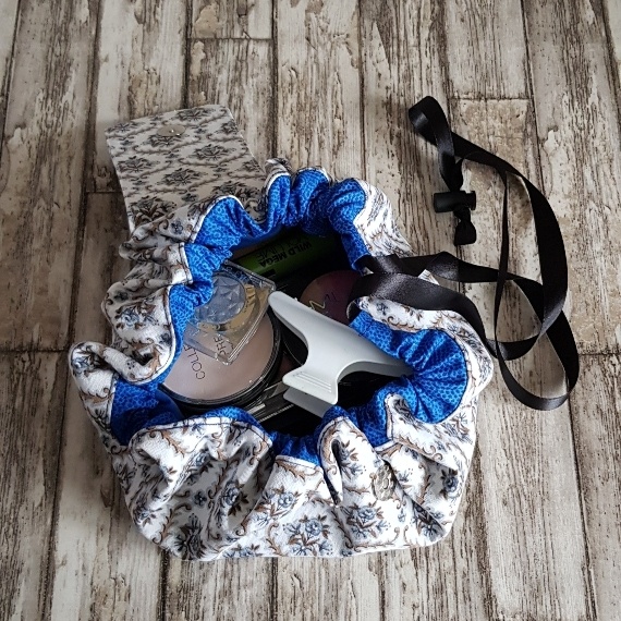 Give your beauty routine a sustainable twist with this charming vintage floral flat lay drawstring bag, handcrafted from repurposed fabric for stylish, eco-conscious organisation.