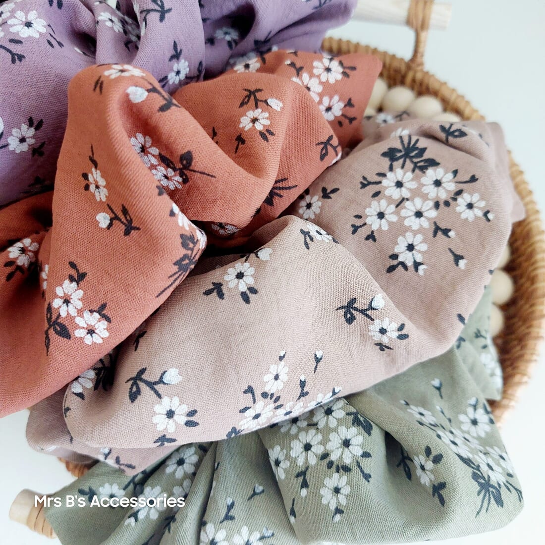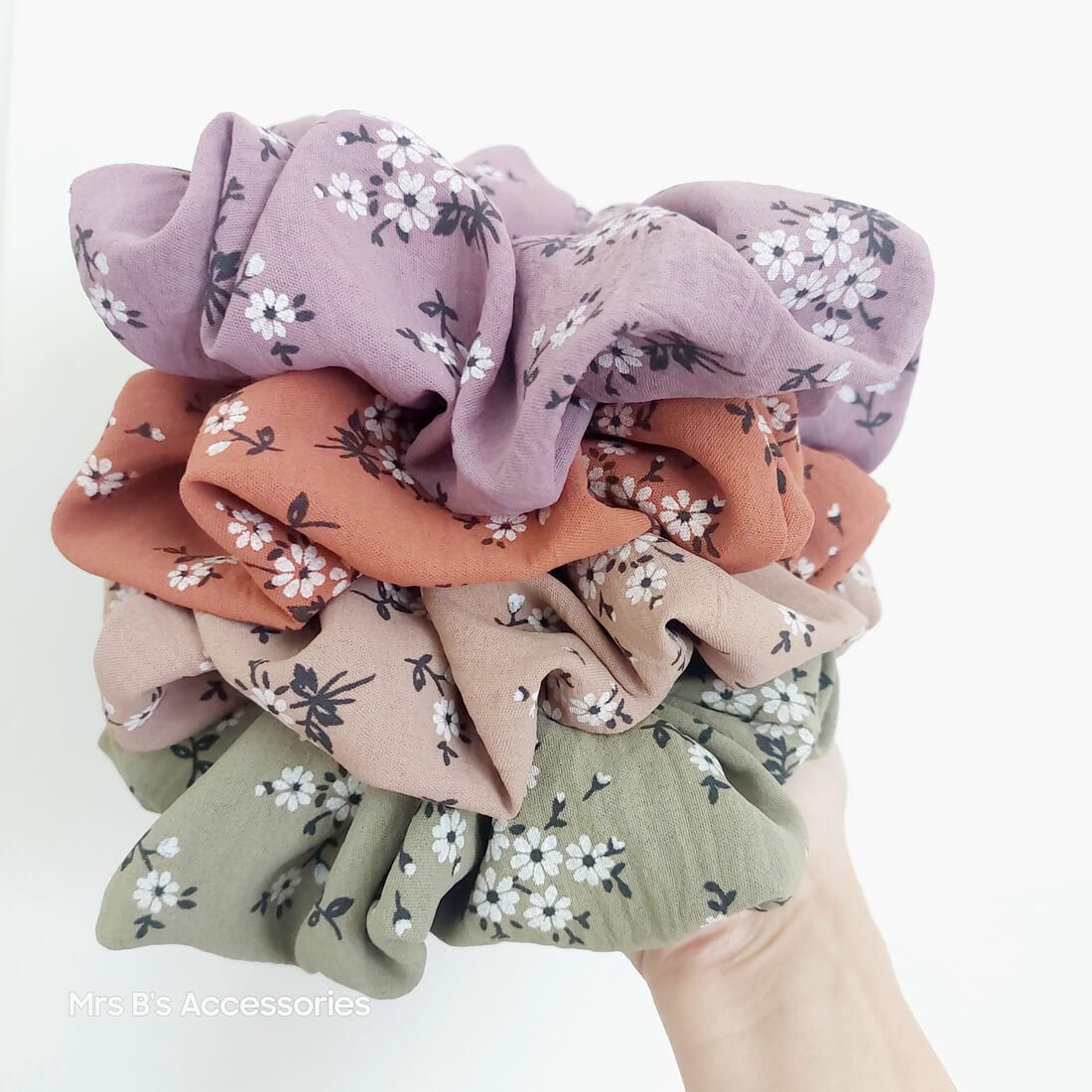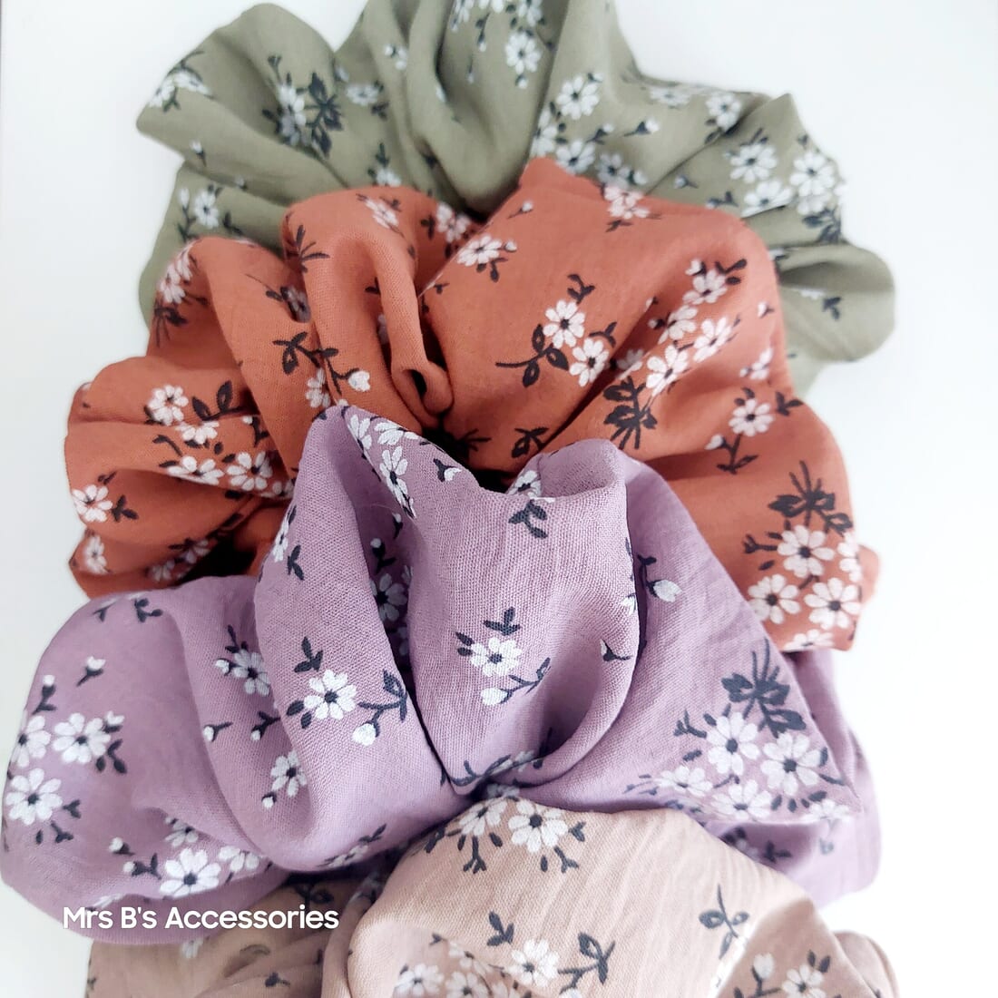 XL Hair Floral Hair Scrunchies in Autumn Colours – Handmade Polyester Scrunchies